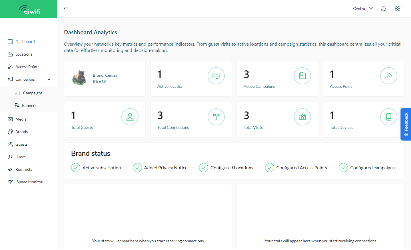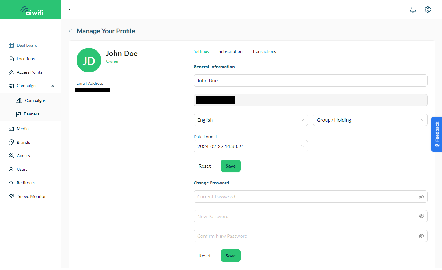 Need Help? If you encounter any issues or have questions, our support team is on standby. Reach out to us through the Help/Feedback section, or directly via platform@aiwifi.io, and we’ll be glad to assist you.